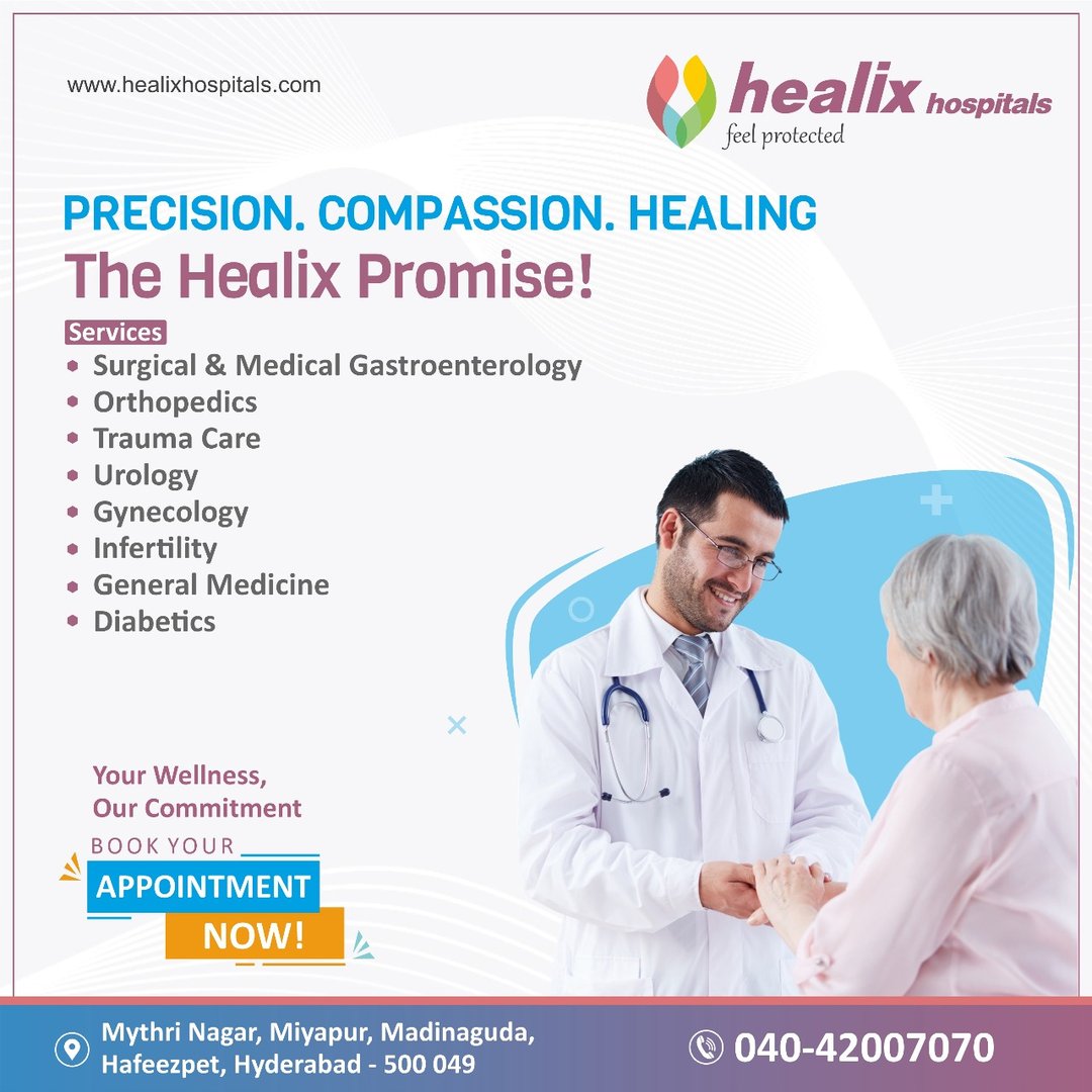 Healix Hospitals is dedicated to delivering highest standards of healthcare. Be it having the finest doctors, cutting-edge technology, state-of-the-art infrastructure or nursing with a smile. Healix Hospitals is dedicated to delivering highest standards of healthcare. Be it having the finest doctors, cutting-edge technology, state-of-the-art infrastructure or nursing with a smile. The hospital has sound reputation for offering premium services and care in key areas of healthcare, including surgical gastroenterology, medical gastroenterology, gynecology & obstetrics, Urology and Orthopedics.